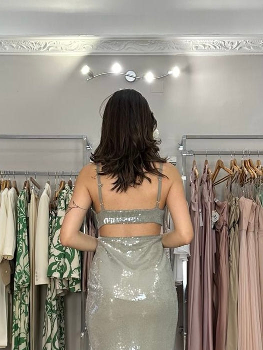 In offertaSouvenir top paillettes argento